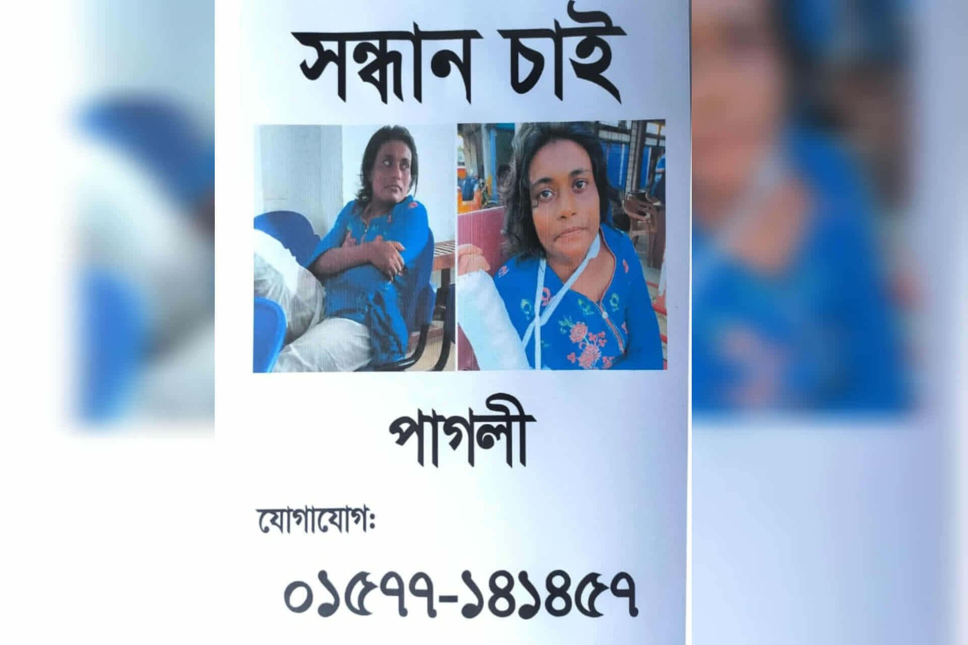 মঞ্জুর আলম বাবু (৫২)। তাঁর প্রিয়তমা মানুষিক প্রতিবন্ধী স্ত্রী হলেন, জয়া আলম (৩৮)। স্বামী- স্ত্রী‘তে গত শনিবার মঞ্জুর আলম বাবু সিরাজগঞ্জের তাড়াশে দেশিগ্রাম ইউনিয়নের কাটাগাড়ী গ্রামে বোনের বাড়িতে মটর বাইকে চেপে বেড়াতে আসেন। এরপর দুপুরে স্ত্রী‘কে নিয়ে দুপুরের খাবার খেতে বসেন। এক ফাঁকে স্ত্রী জয়া আলম বাহিরে উঠানে কাজ আছে বলে ঘরের বাহিরে যান। তারপর খাওয়া শেষে বাহিরে এসে মঞ্জুর আলম বাবু দেখেন স্ত্রী নেই। তখন থেকেই শুরু হয় খোঁজাখুঁজি। কিন্তু গত ছয় দিনেও বাবু তাঁর স্ত্রীকে খুঁজে পাননি। সেই সঙ্গে প্রিয়তমা স্ত্রী‘কে খুঁজে না পেয়ে বাবুরও এখন পাগল প্রায় অবস্থা।